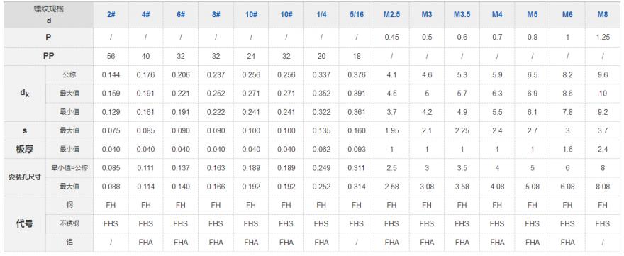 Self-Clinching壓鉚件 FH FHS FHA 【平頭式壓鉚螺釘】工廠生產,不接零售”